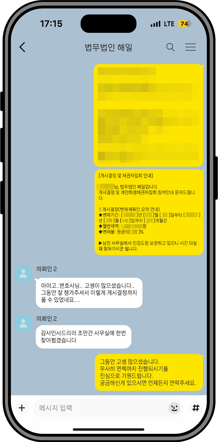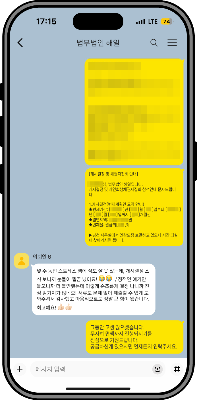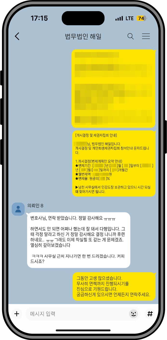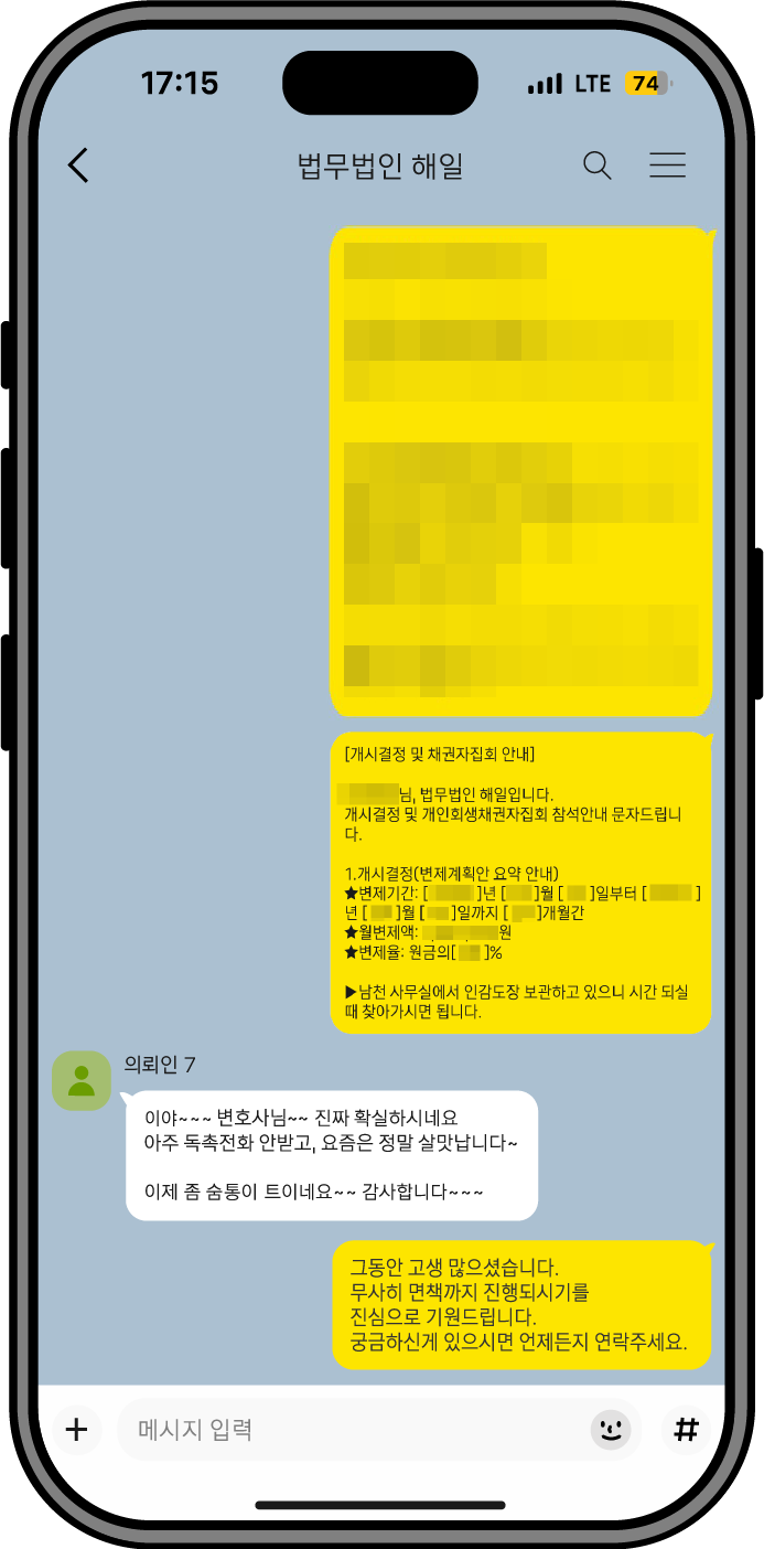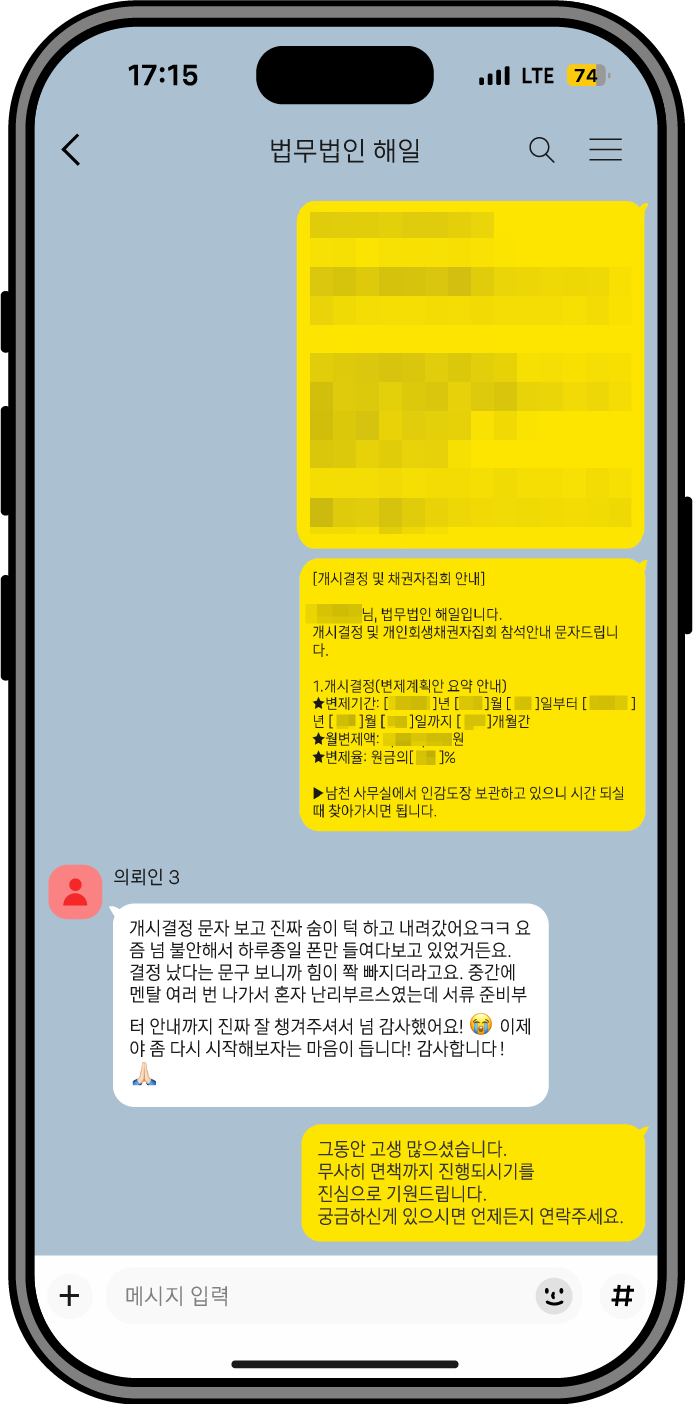 회생 과정 전반에서 느끼신 변화와 만족도를 생생한 경험담으로 전달드립니다.